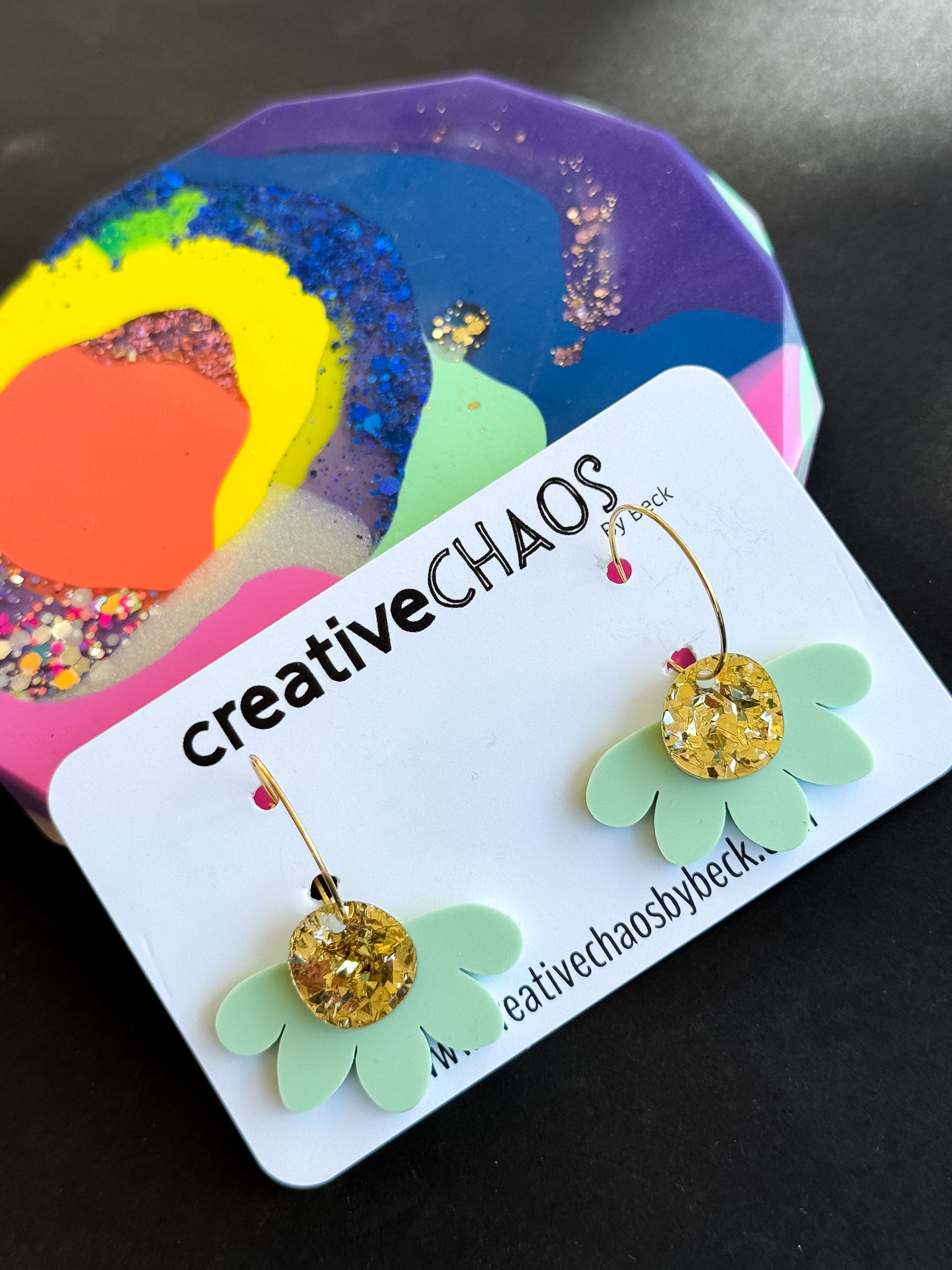 1/2 Flower Acrylic Dangles on Gold Hoop