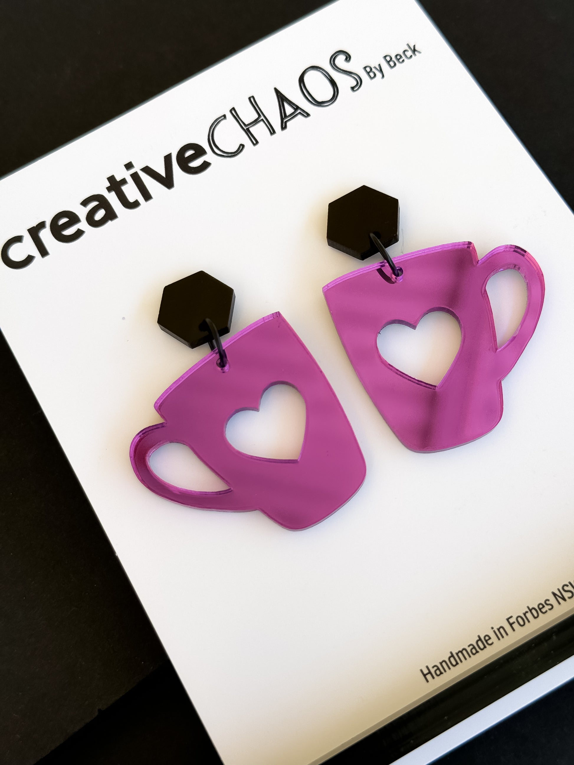 Add these delightful Mirrored Acrylic Coffee Mug Dangle Earrings to your cart today and let your love for coffee shine through your style!