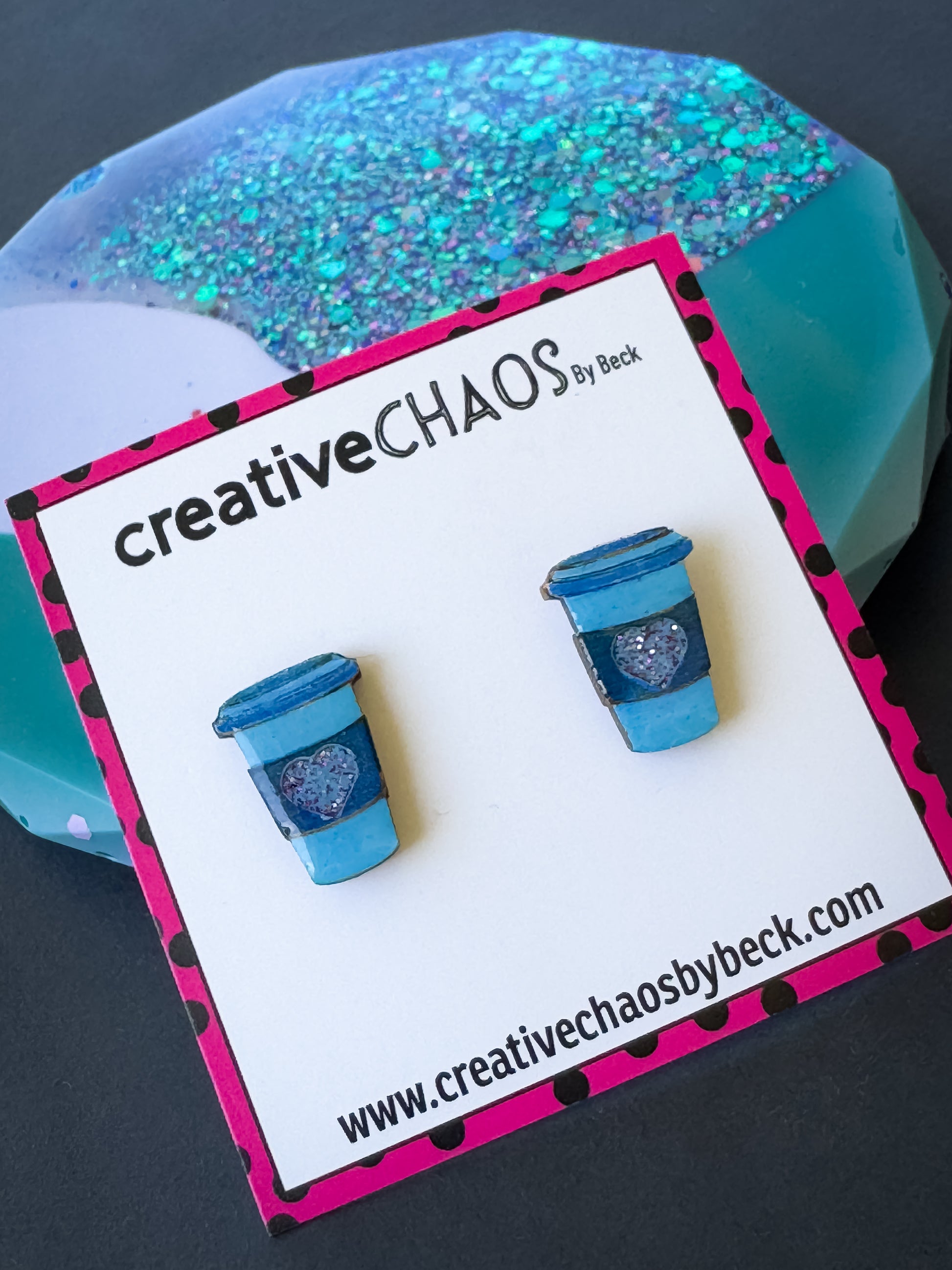 Introducing our one-of-a-kind Wooden Coffee Cups, beautifully hand painted and adorned with a glittery heart, finished with a durable coat of resin for a sleek and polished look. These 18mm cups are perfect for coffee lovers who appreciate a touch of artistry in their daily routine!