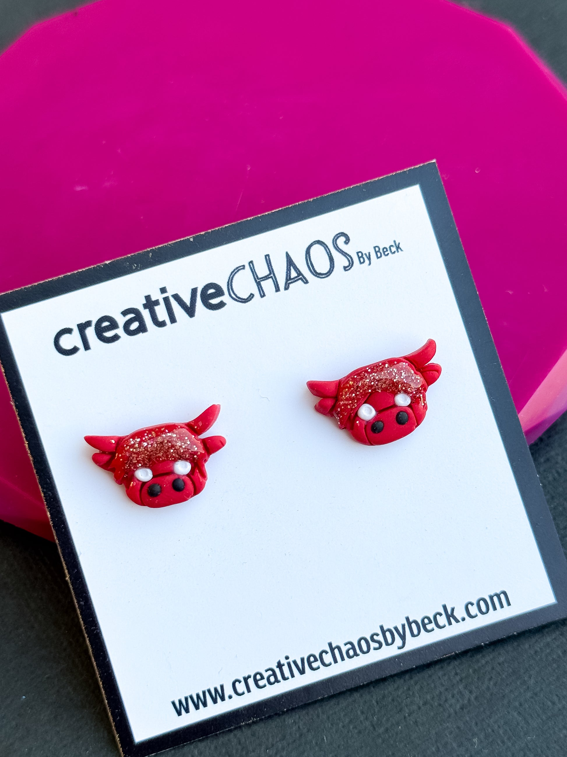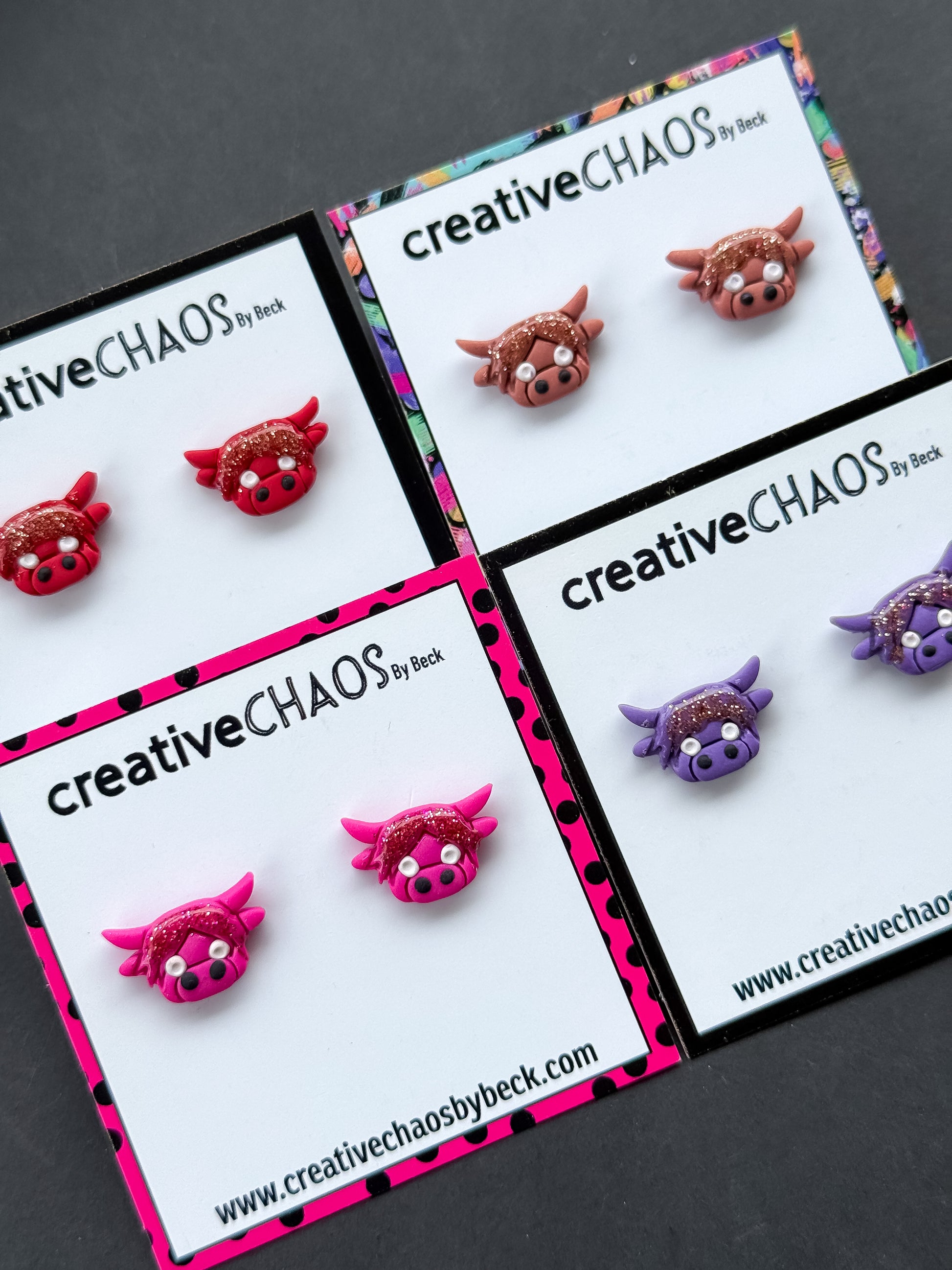 These polymer clay cow stud earrings are more than just accessories—they’re a celebration of fun and individuality. Whether you're treating yourself or searching for the perfect gift, these earrings are sure to delight with their cute and sparkly design.